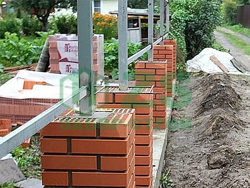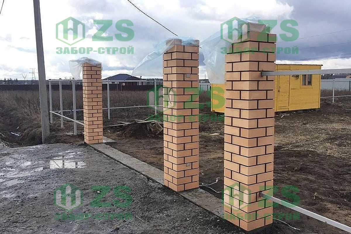 Столбы для забора с кирпичной кладкой